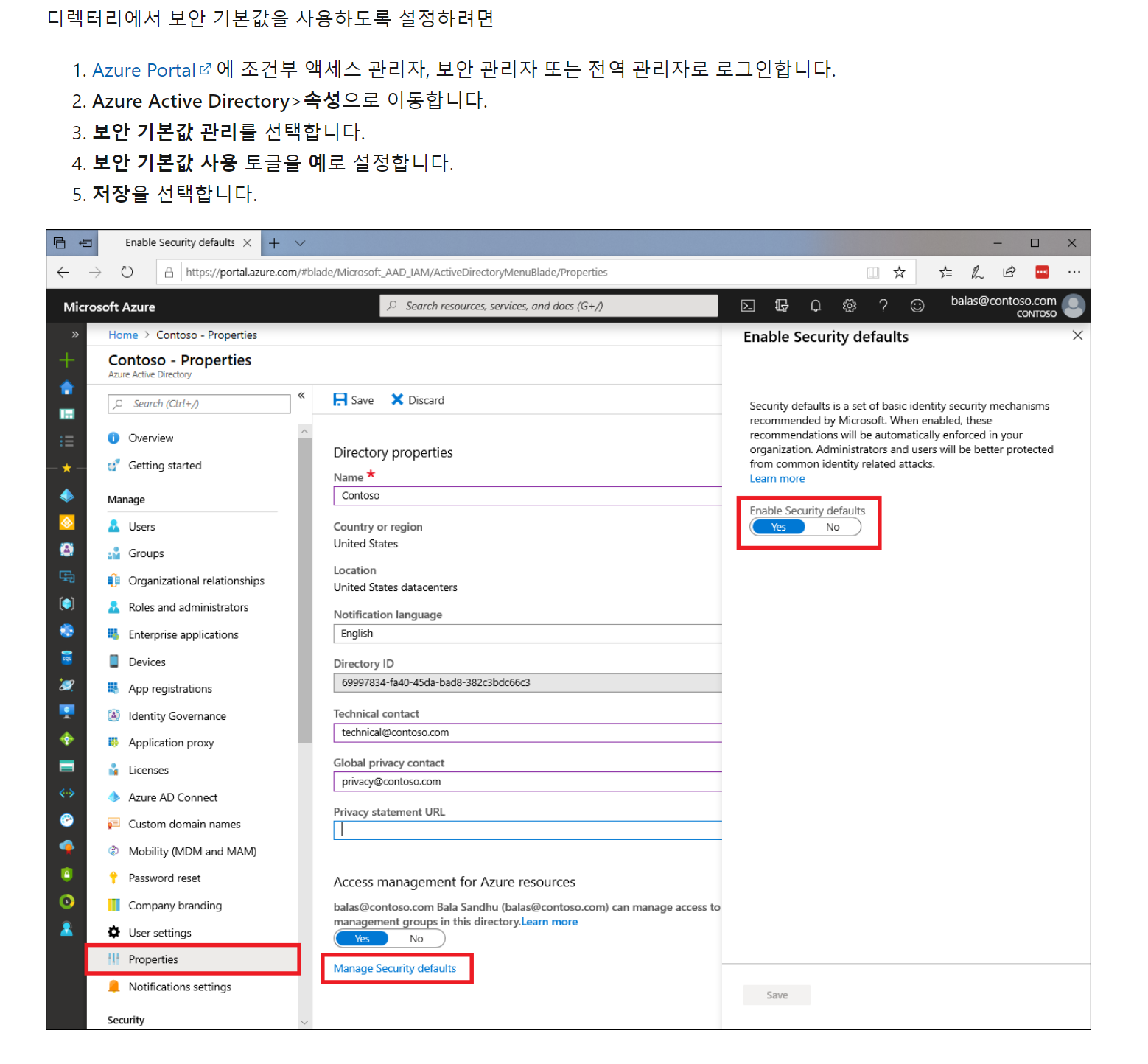 Azure Active Directory 보안 기본값 - Microsoft Entra