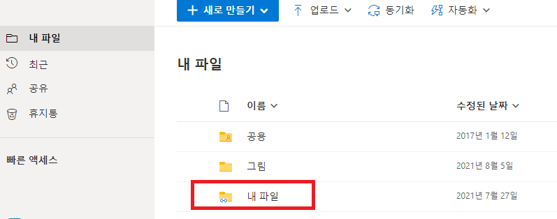 내컴퓨터에 Onedrive 가 동기화 중이다.