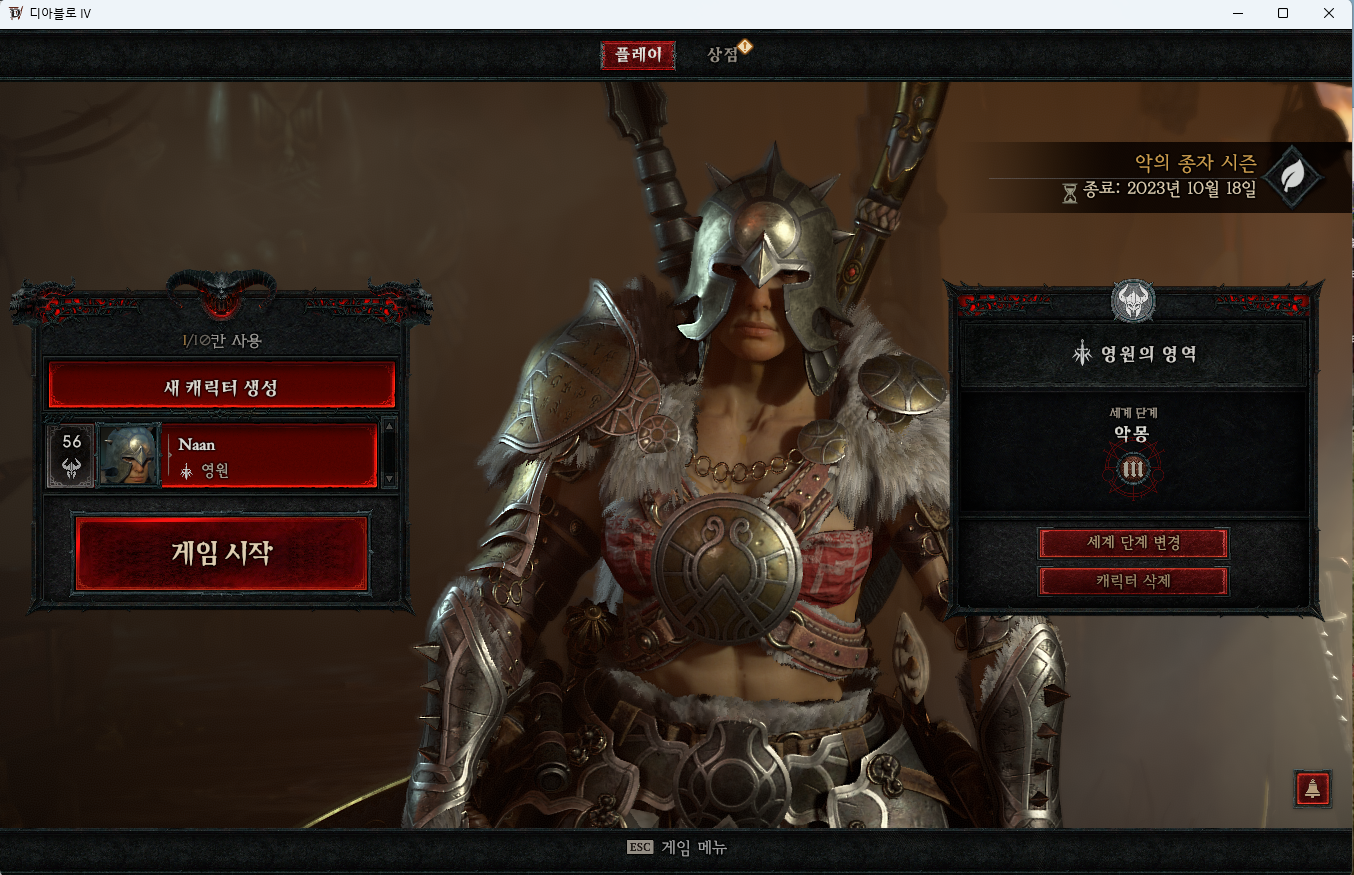 시즌 콘텐츠를 이용하려면 시즌 영영에 새 캐릭터를 만들어야 한다고 하는데 그냥 게임 실행하기를 눌렀다.