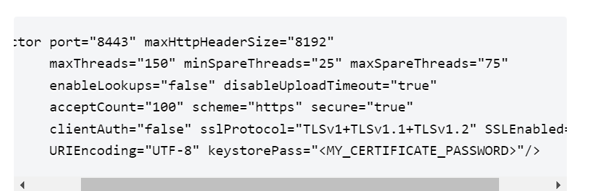 clientAuth="false" sslProtocol="TLSv1.2" SSLEnabled="true"