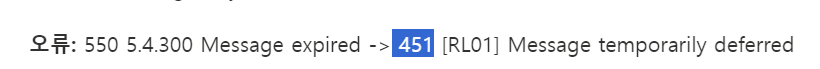 550 5.4.300 message expired -> 451 [RL01] Message temporarily deferred