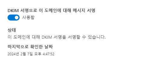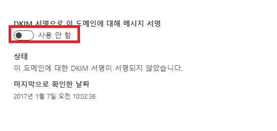 이를 해결 하기 위해서는 DKIM 을 활성화 해줘야 한다.