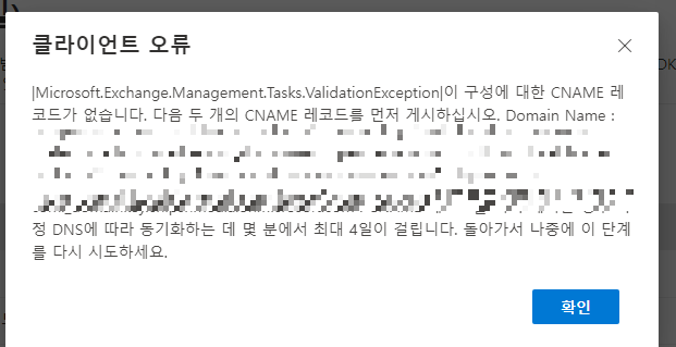 만약에 클라이언트 오류가 뜬다면 CNAME 코드가 정상적으로 들어가져 있지 않기 때문이다.