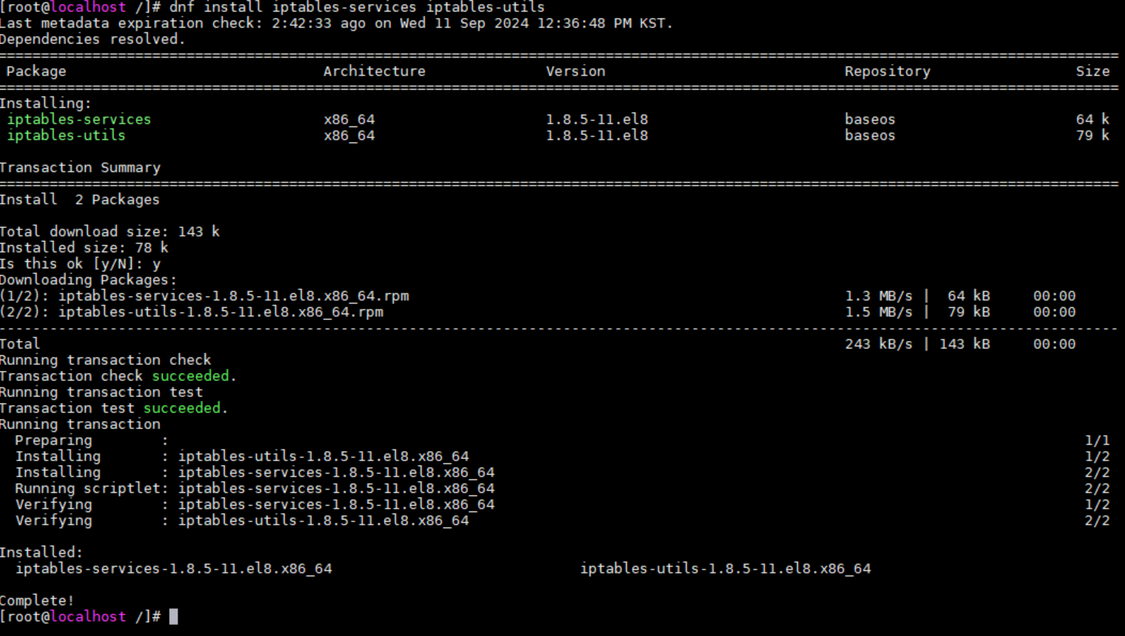 # dnf install iptables-services iptables-utils