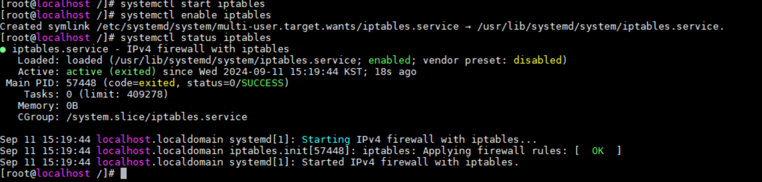 iptables 설치가 완료 되었다.