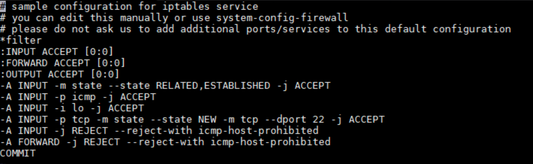 # vi /etc/sysconfig/iptables