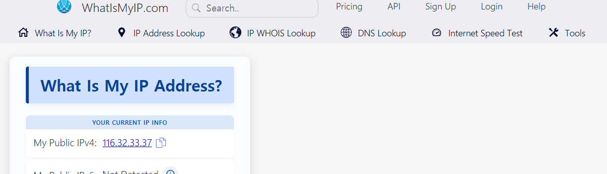 위 사이트 가면 내IP를 확인 할 수 있다. 116.32.33.11 이 내 IP 이다.