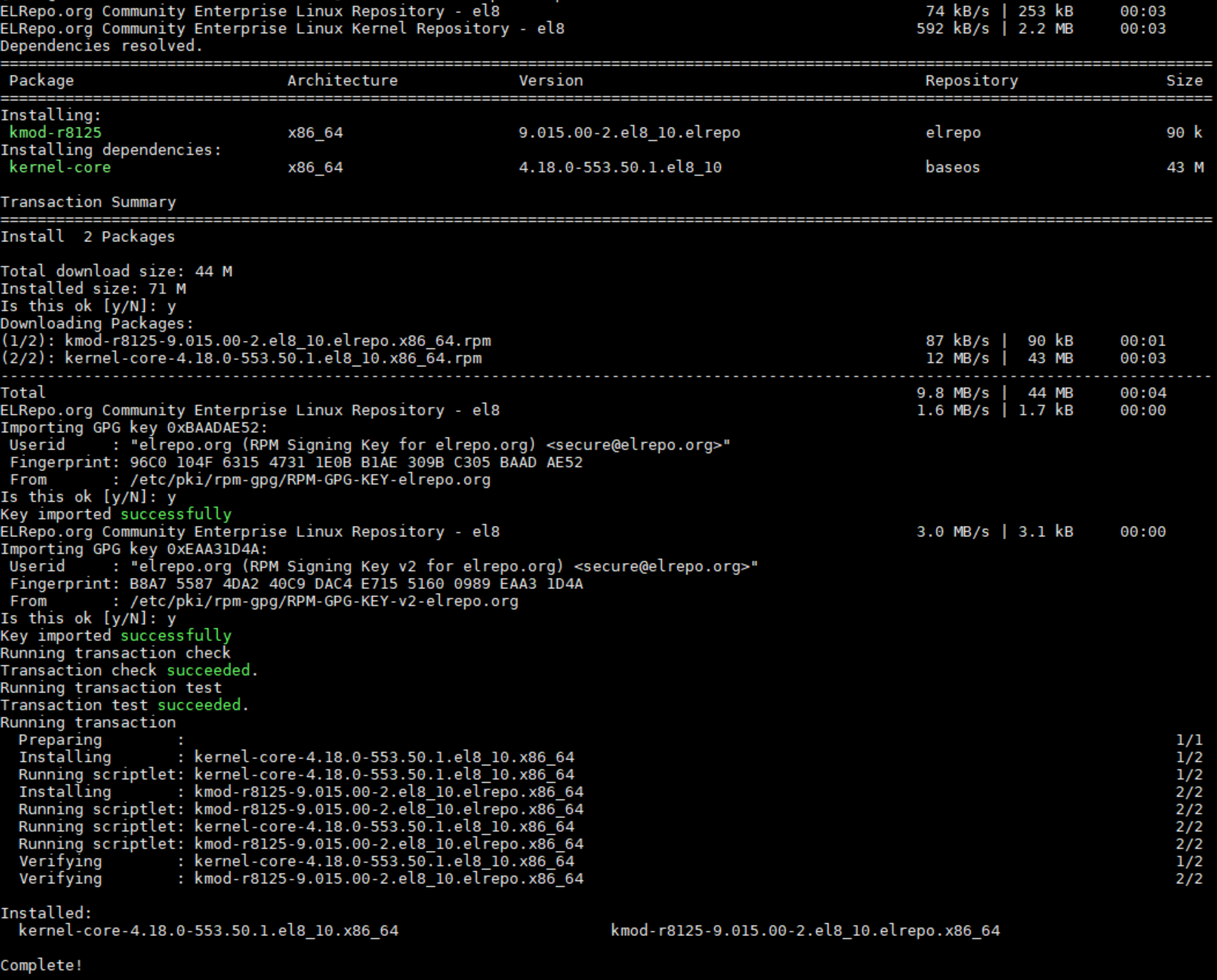 # dnf --enablerepo=elrepo-kernel install kmod-r8125
