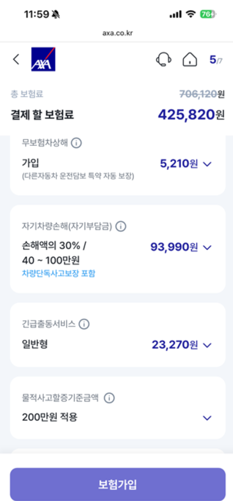 나는 네이버에서 삼성,DB 조회를 했고 토스에서 캐롯손해보험 조회 했다. 마지막으로 하나머니에만 있는 악사손해보험 조회를 했다.