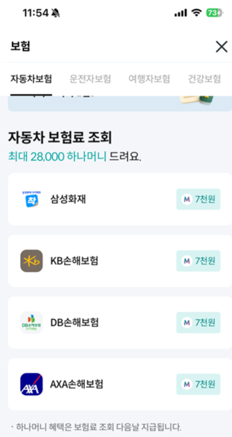이전에 토스, 네이버 등으로 자동차보험 견적내기로 돈을 벌었는데 하나머니도 된다.