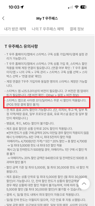 그런데 충격인게 할인이 안되었다. 어라 20프로 할인이 왜 안됐지?? 음료만 해야 하는건가??? 하고 찾아보니...