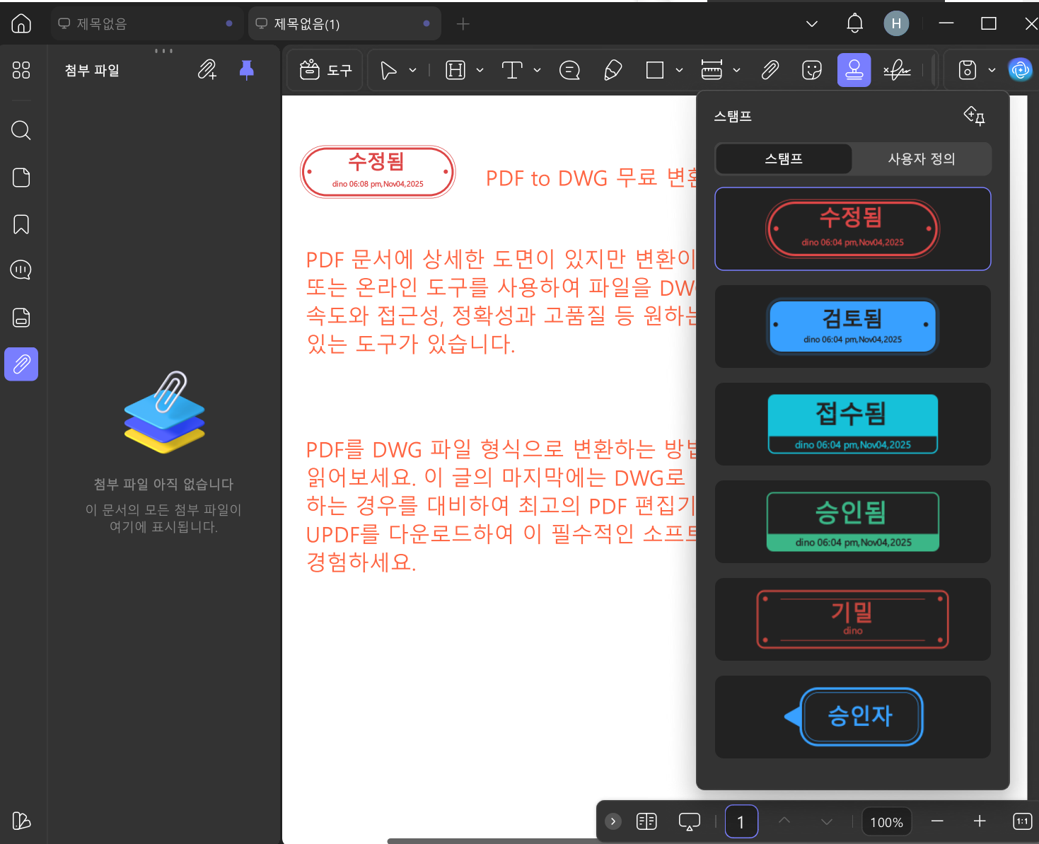 테스트 삼아서 빈문서로 PDF 문서를 만들어보자.