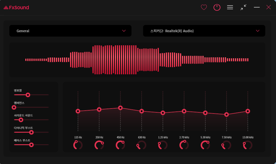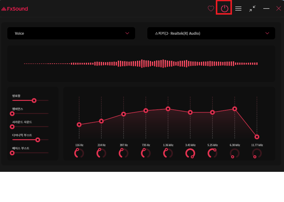 그럼 이렇게 연결이 되고 손쉽게 이퀄라이저를 설정 할 수 있다.