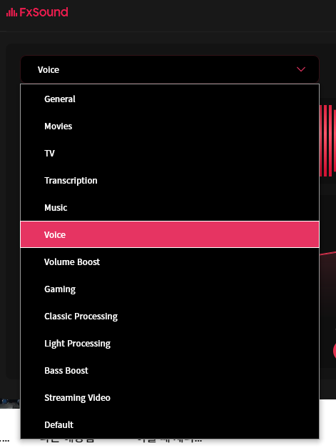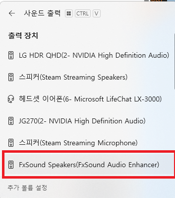 기본 출력을 위와 같이 fxsound 로 변경하고