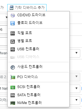 PCI 디바이스가 활성화 안되어 있다면 앞에 하드웨어를 추가를 안해서 그렇다 추가를 먼저 하자.