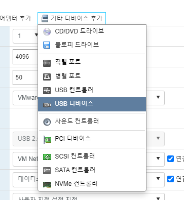 USB 디바이스 선택해서 추가 하고
