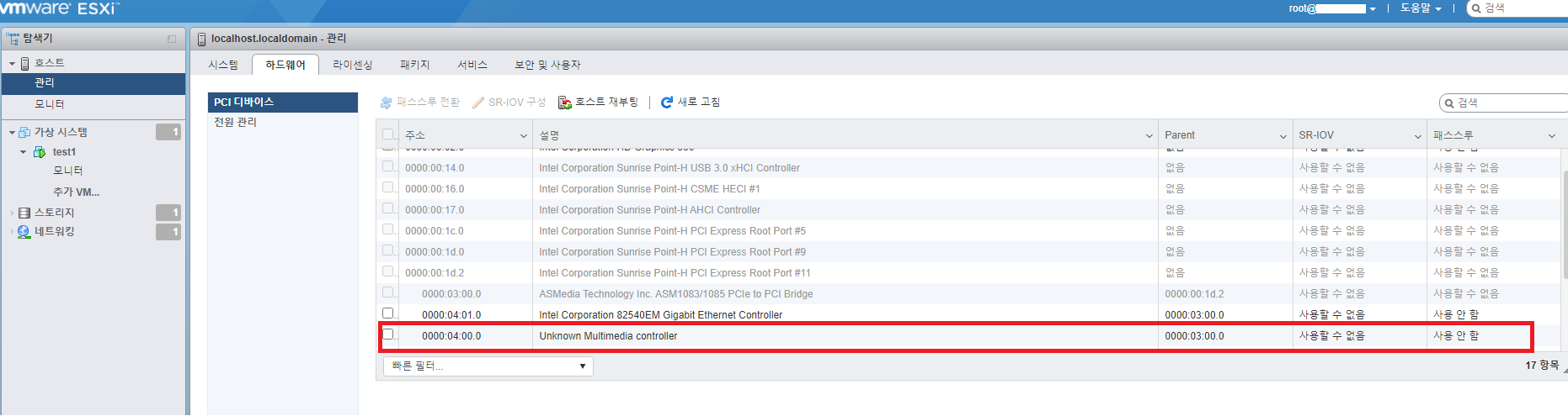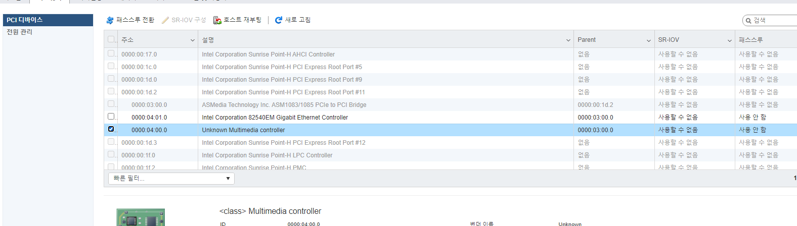 가상화에 lspci 하면 연결된 장치들이 뜨는데 Multimeida PCI 장치 하나 연결해놨는데 안뜬다.