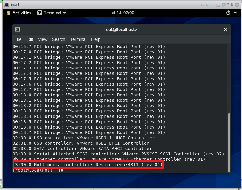 부팅 후 lspci 해보면 정상적으로 인식이 되어 있는것을 확인 할 수 있다.