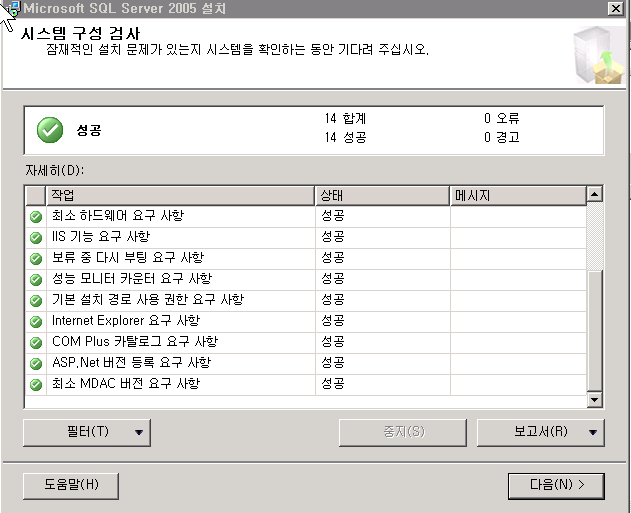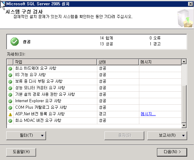 Microsoft SQL 2005 설치시 ASP.Net 버전 등록 요구 사항 에러 해결 방법