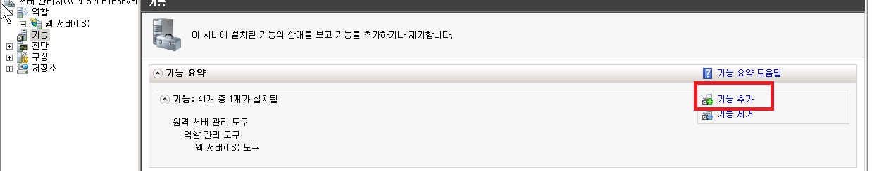 역할에서 기능에 기능 추가를 눌러서