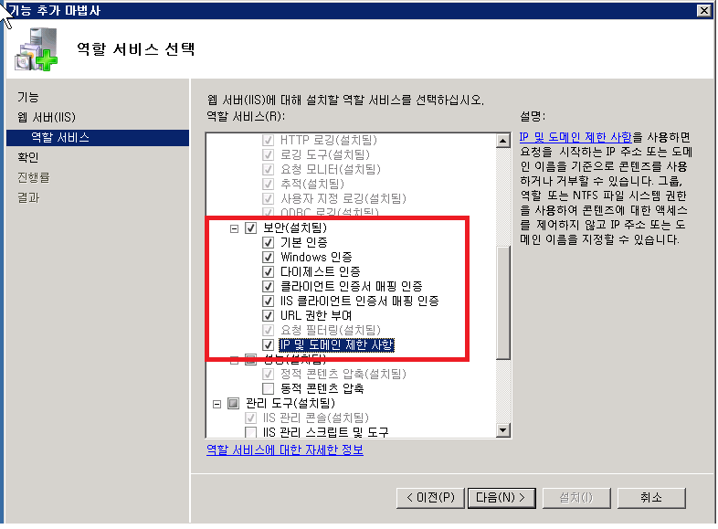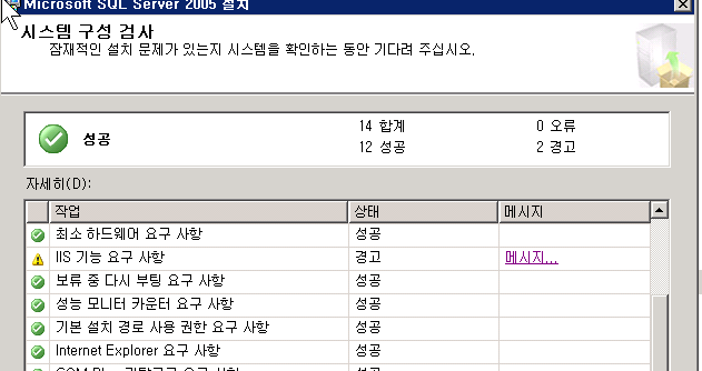 Microsoft SQL Server 2005 설치시 IIS 기능 요구 사항, ASP.Net 버전 등록 요구 사항 에러 메세지 수정 방법