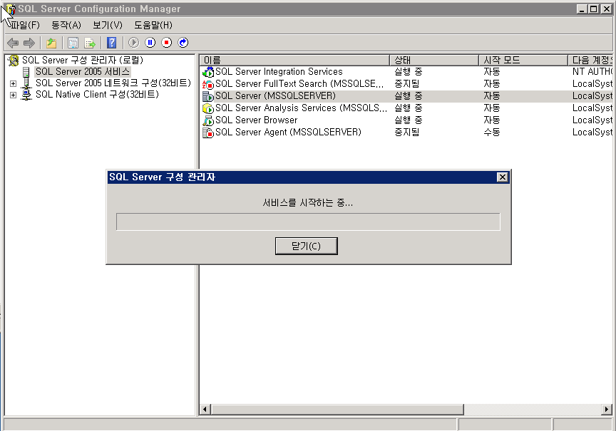 SQL Server Configuration Manager 에 들어가서 서비스 재시작 해주고