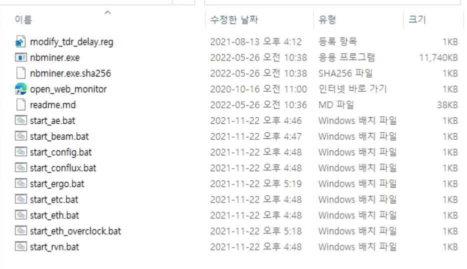 nbminer -a ethash -o nicehash+tcp://asia.ethash-hub.miningpoolhub.com:20535 -u 아이디.장비명
