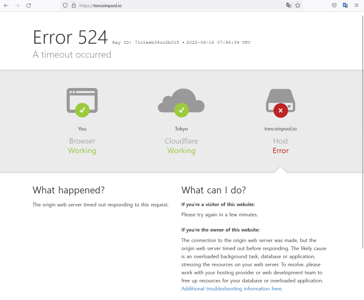 6월 16일부터인가 톤코인풀 사이트도 서버가 닫혔다.