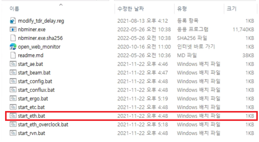 start_eth.bat 에 마우스 오른쪽 마우스를 눌러 파일을 편집을 하자.