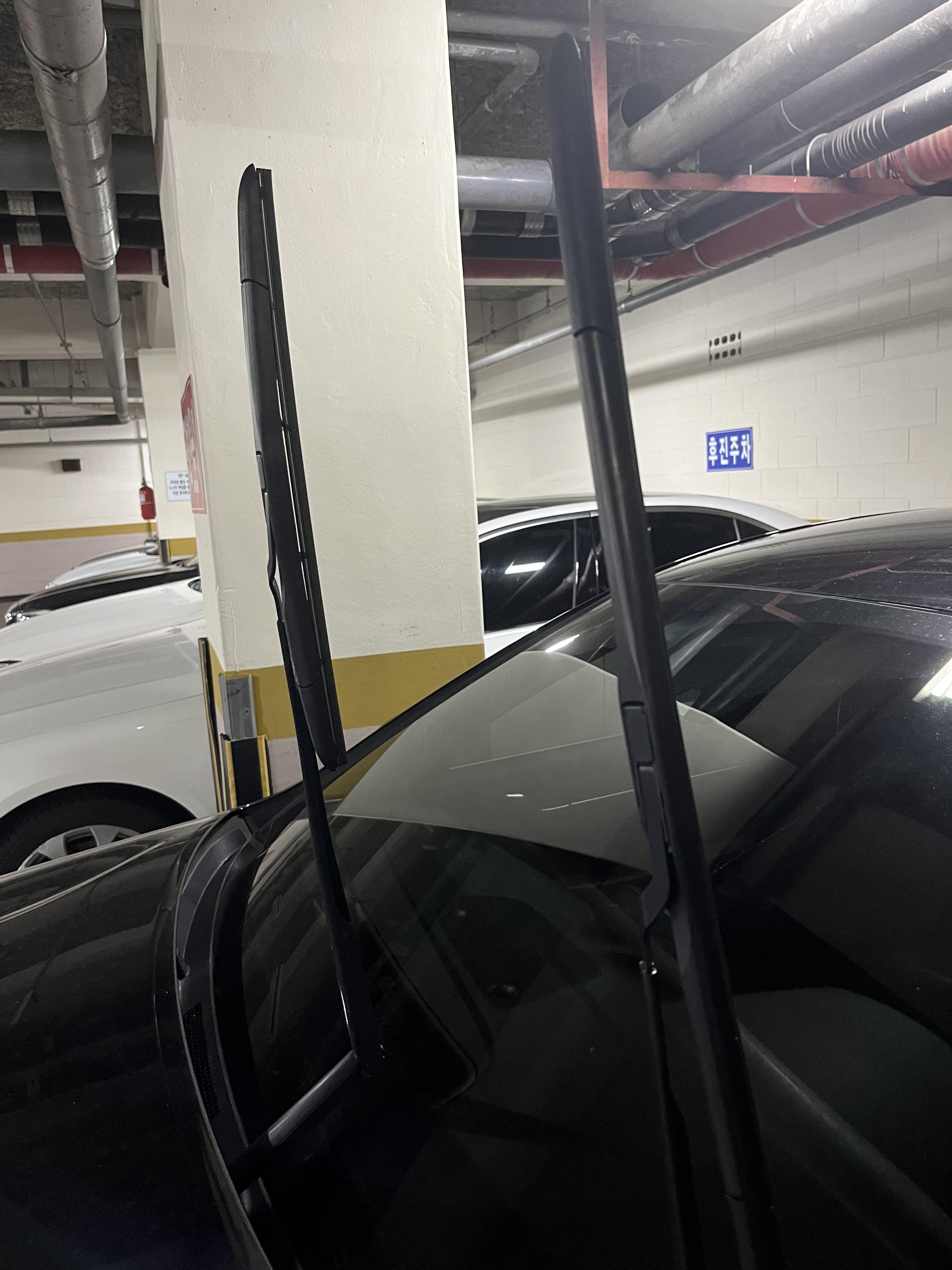 와이퍼를 올리면 위와 같이 올라가 있다.