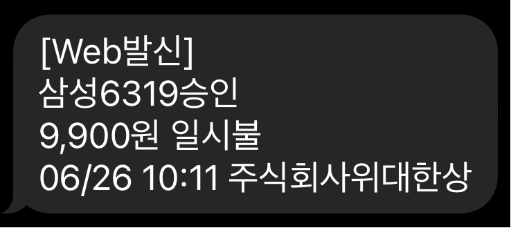 갑자기 문자가 하나 날라온다.