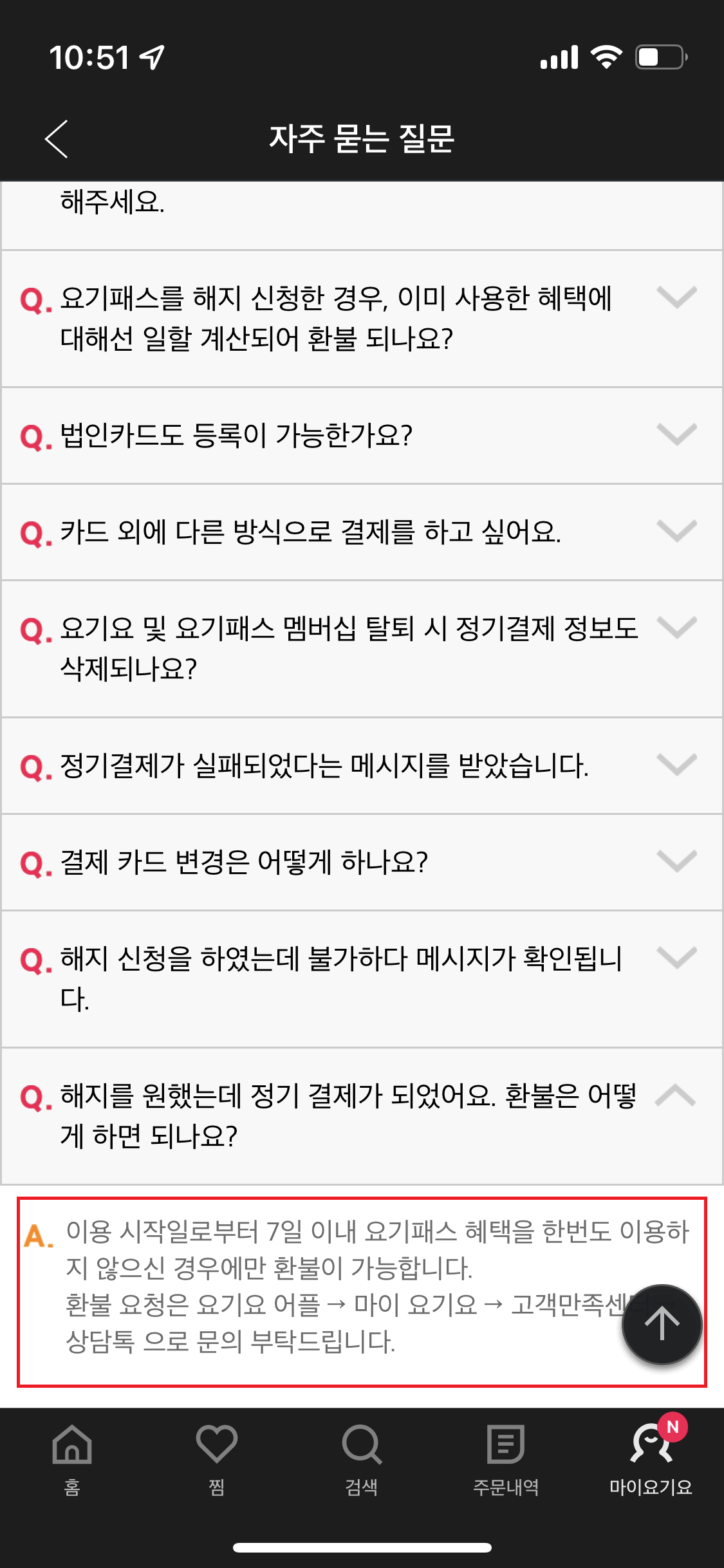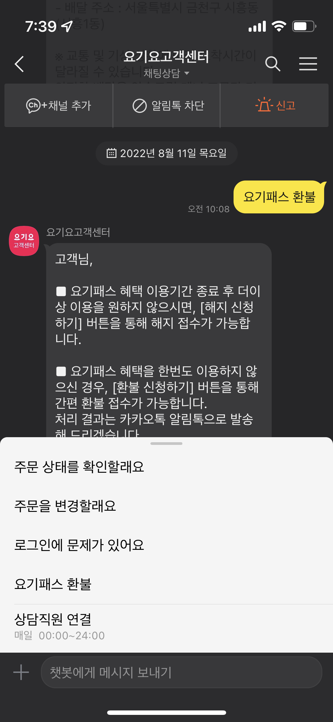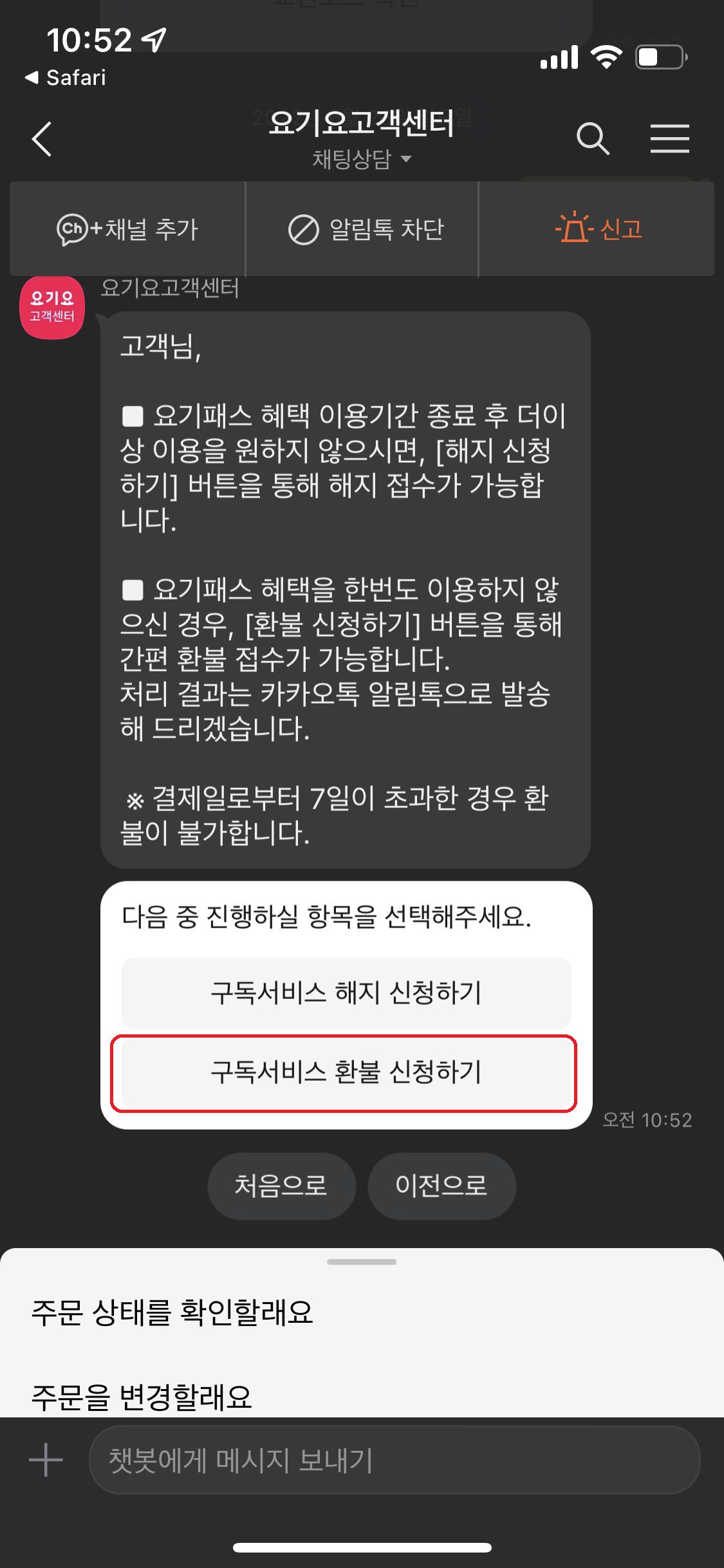 요기요 패스 환불 방법
