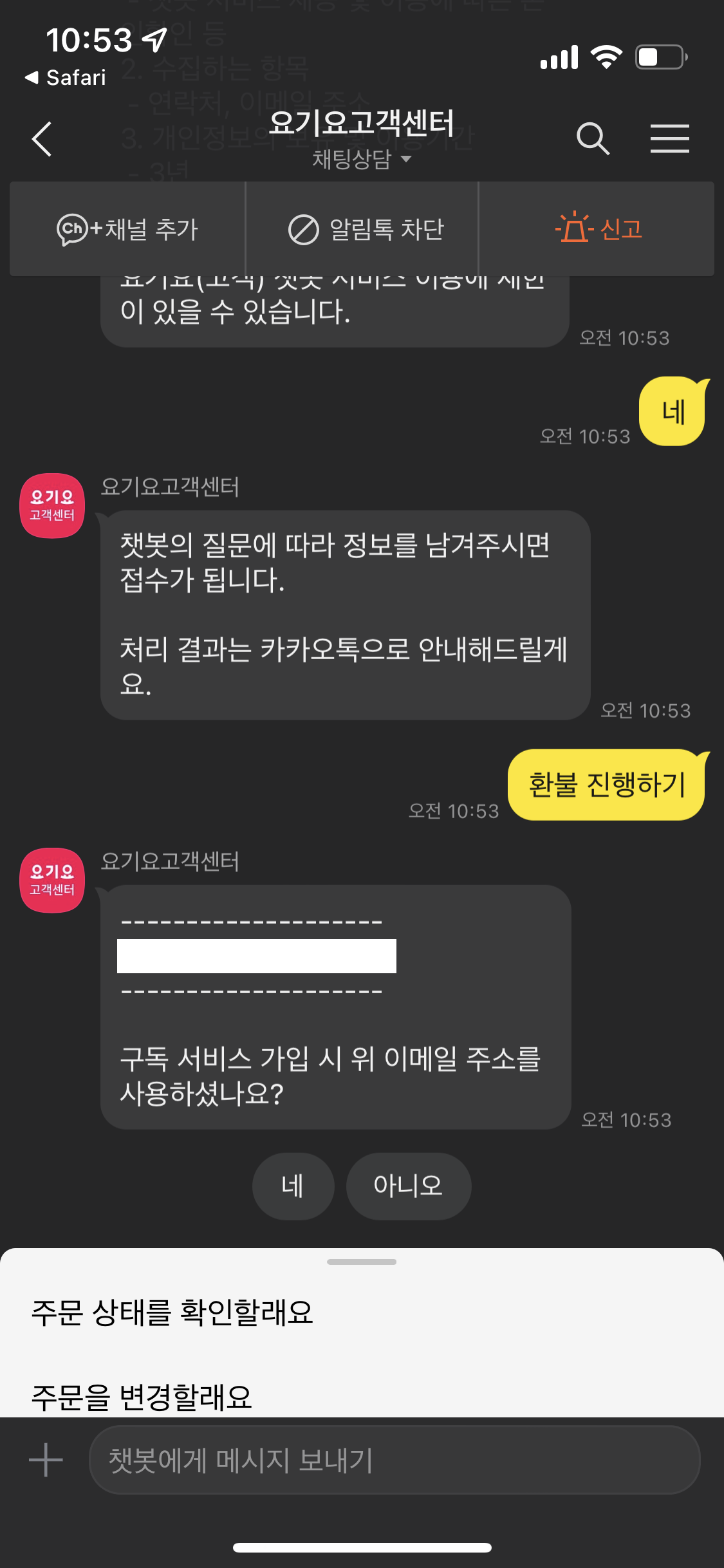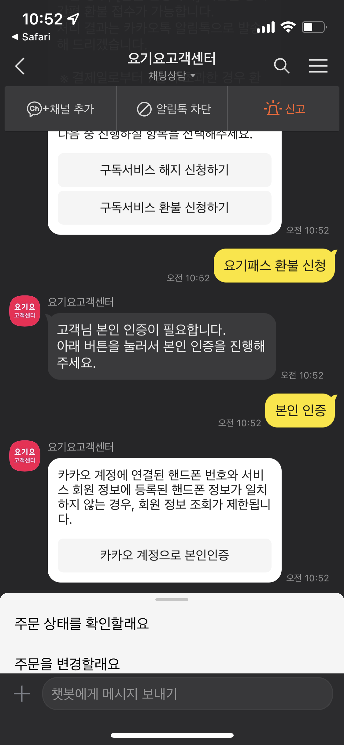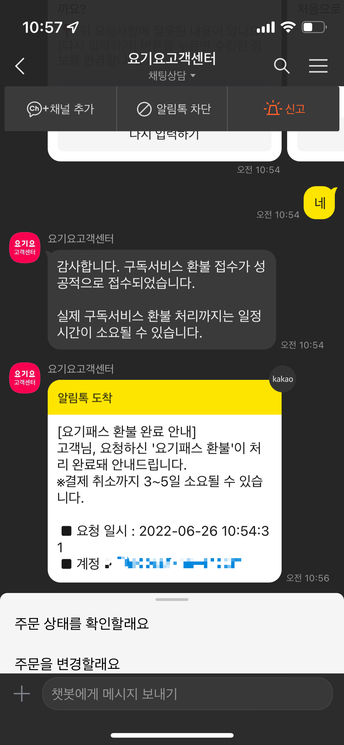 요기요 패스 환불 방법