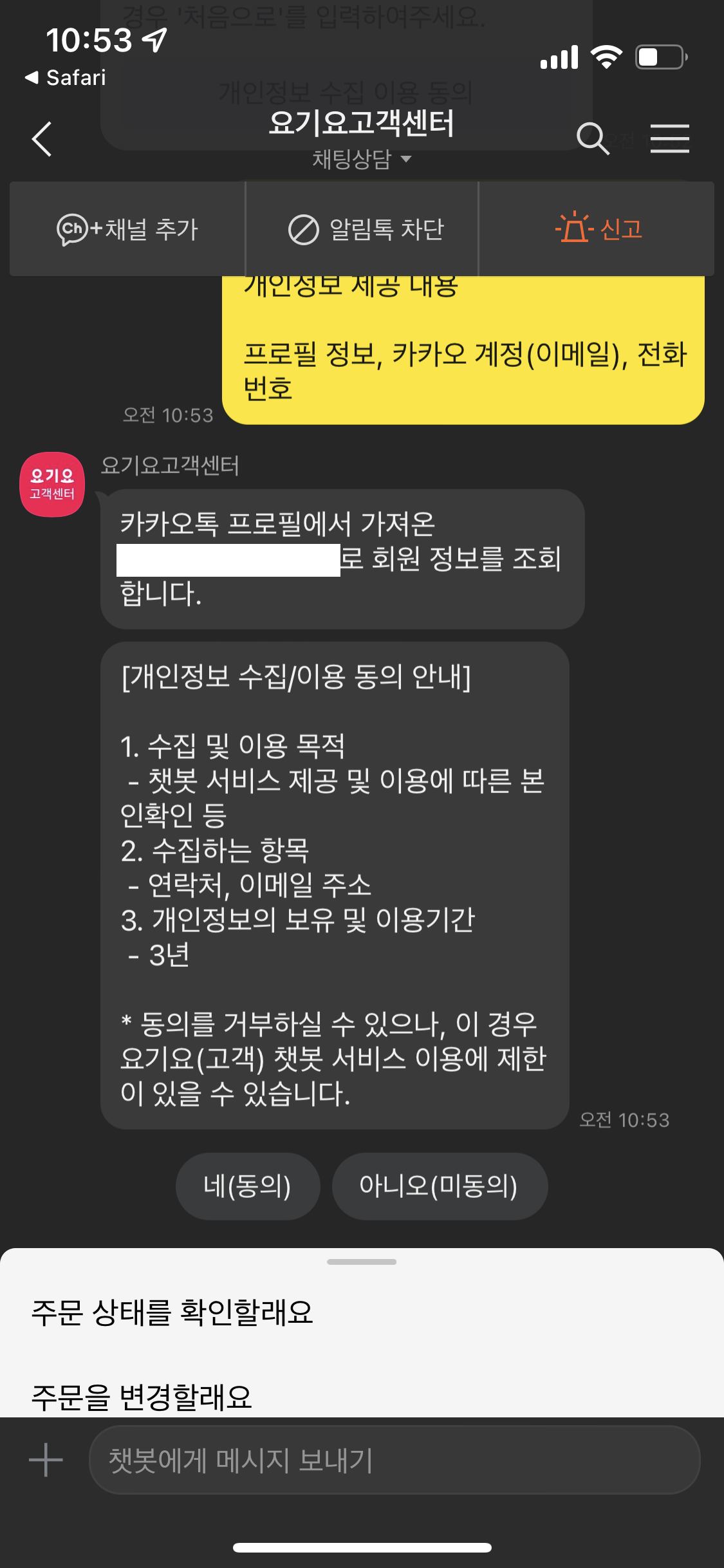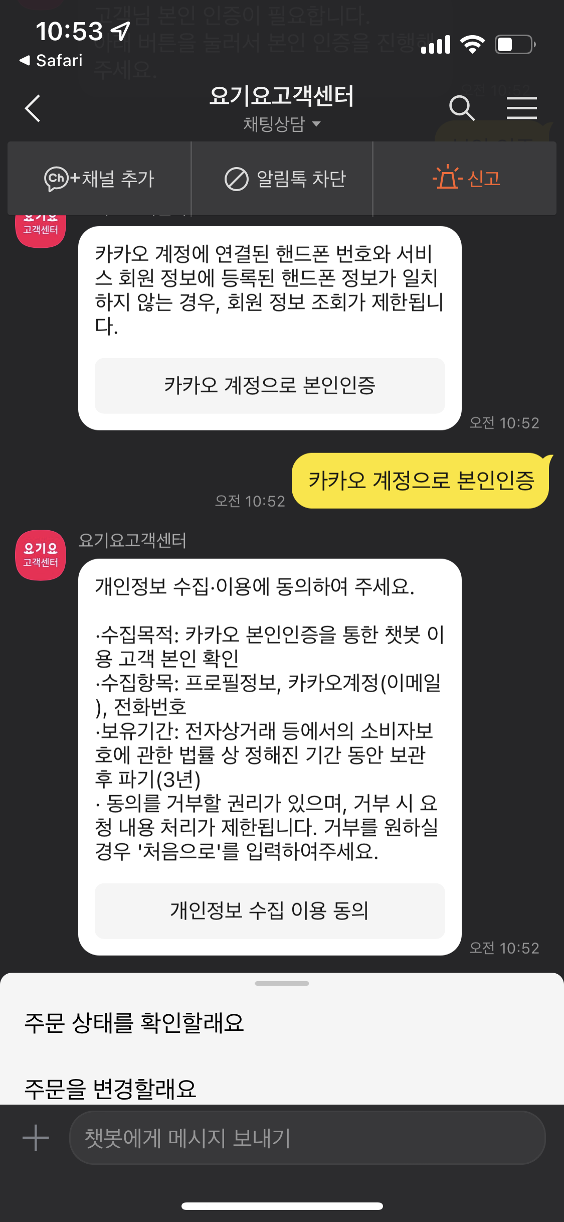 또 전화번호 확인을... 몇번을 물어보는건가.. 네 를 누르자.