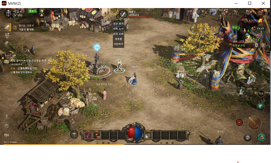 파티로 진행 한다면 퀘스트 및 렙업이 빠르게 할 수 있다. 파티로 게임을 하자.