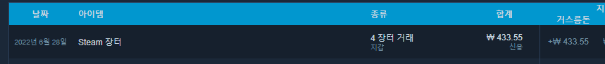 총4개 판매 433.55 원이 들어온것을 확인 할 수 있다.
