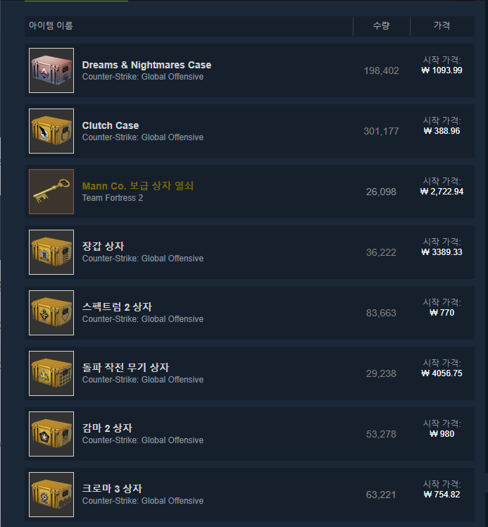 스팀 농사프로그램을 구동을 하면 트레이딩 카드를 얻을 수 있다.