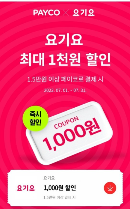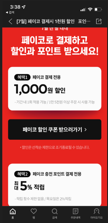 7월 한달 내내 페이코로 결제 하고 할인과 포인트 받으세요. 라고 있지만 쿠폰 받으러가면