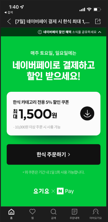 매주 금요일은 네이버페이 7프로 할인이라고 한다.