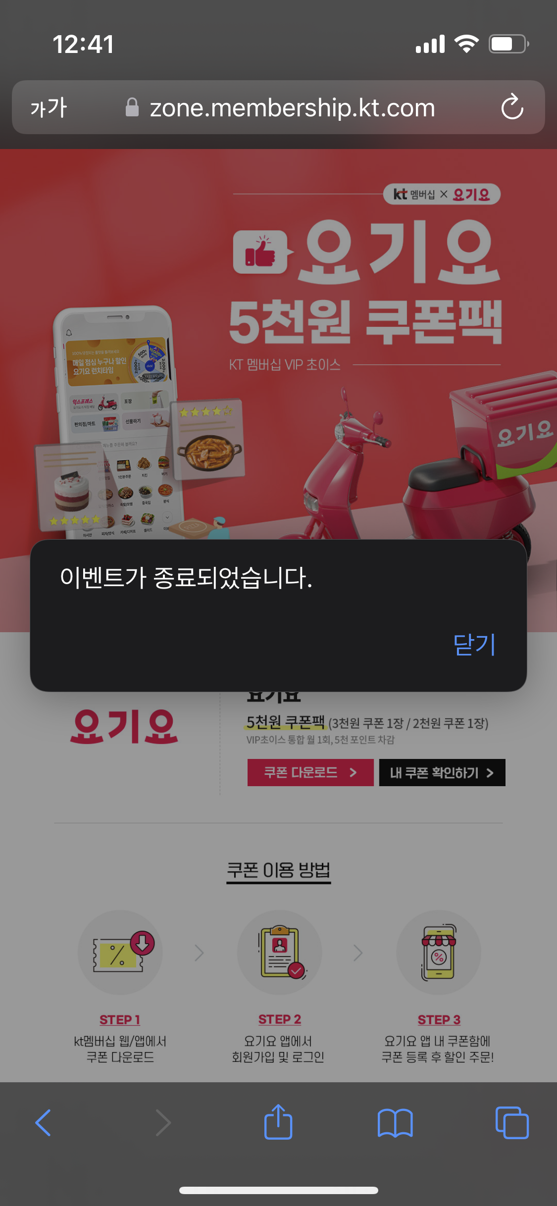 요기요 패스 환불 방법 갑지그 문자가 하나 날라온다. 헛 요기패스 자동 결제를 해지 않해놨었다!! 어플 들어가서 해지를 하려 하니 위와 같이 에러가 뜨면서 해지가 안된다. 결제일에는 해지