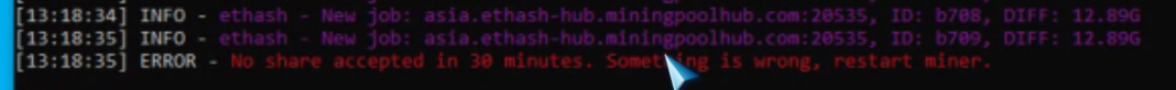 error - no share accepted in 30 minutes. something is wrong restart miner