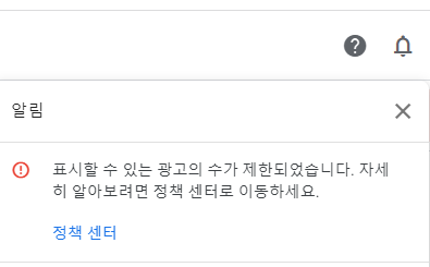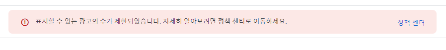 표시할 수 있는 광고의 수가 제한되었습니다. 자세히 알아보려면 정책 센터로 이동하세요. 라고 떠 있다.