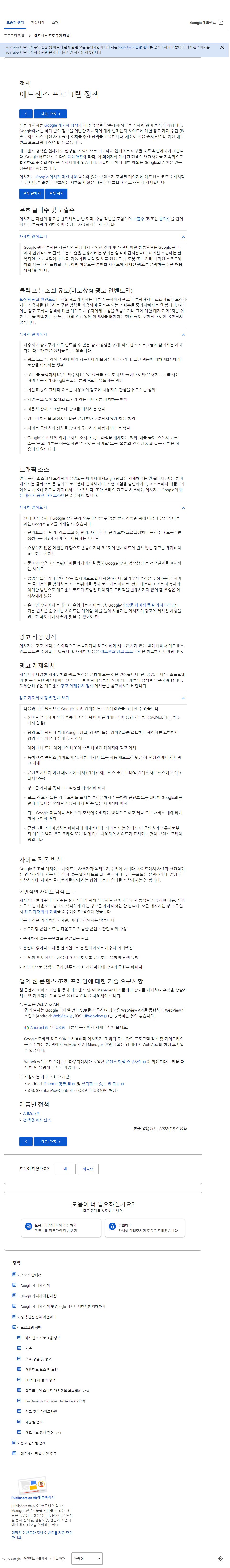정책 및 제한 사이트 확인하기 눌러봤다.
