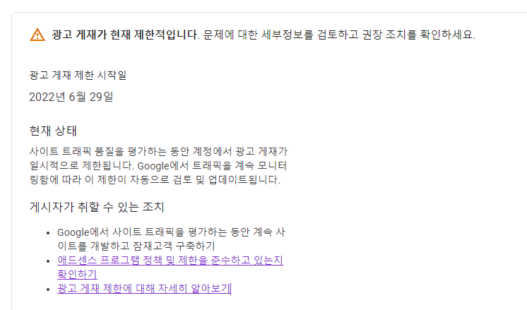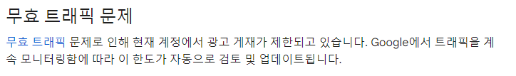 무효 트래픽 문제로 인해 현재 계정에서 광고 게재가 제한되고 있습니다