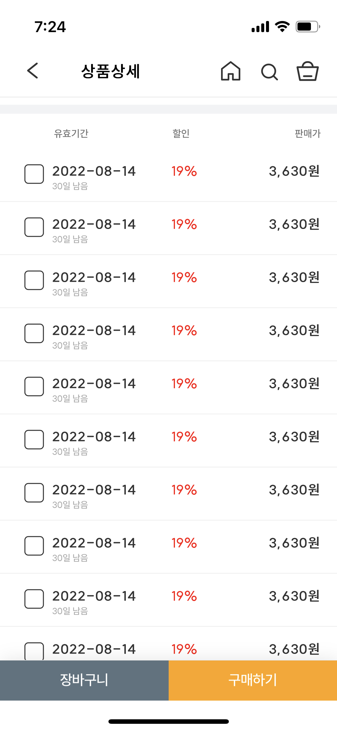 유효기간이 짧은건 저렴하고 길개 남은건 가격이 좀더 비싸다.