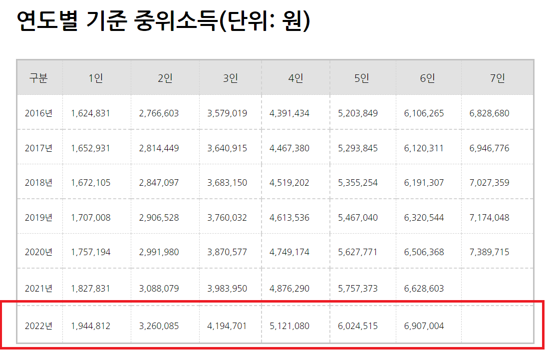 즉 1인 가족 기준 1,944,812원 이하만 받을 수 있다.