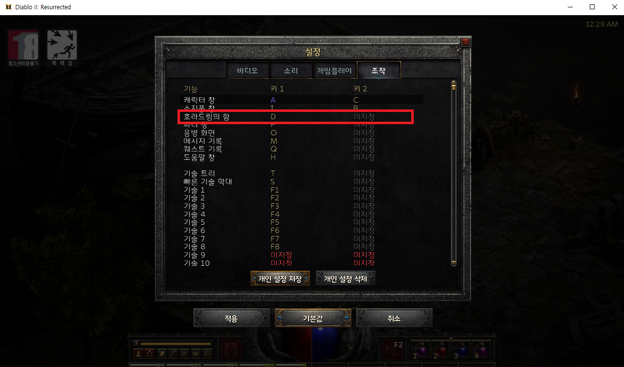 디아블로2 레저렉션 2.4.3 호라드림의 함 바로 열기 단축키 방법