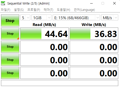 맨앞과 마지막 포트 속도는 쓰기 속도는 좀 낮지만 그래도 제속도가 나온다.