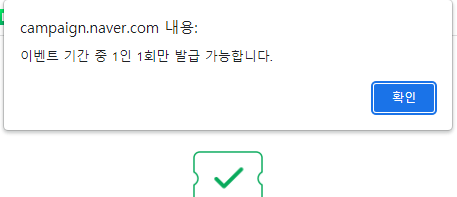 하지만 이벤트 기간중 1인 1회만 발급 된다.