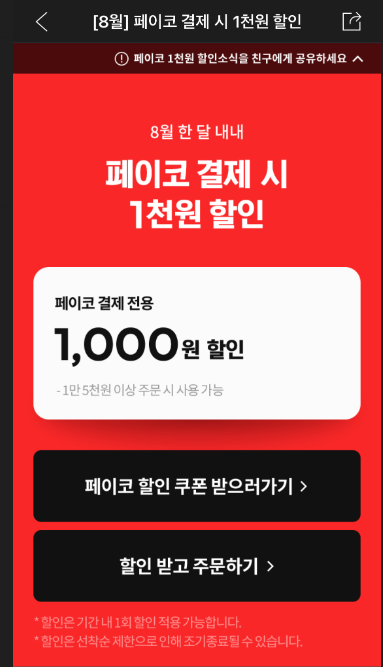 네이버페이 x 요기요 1천원 할인쿠폰(1만원이상)